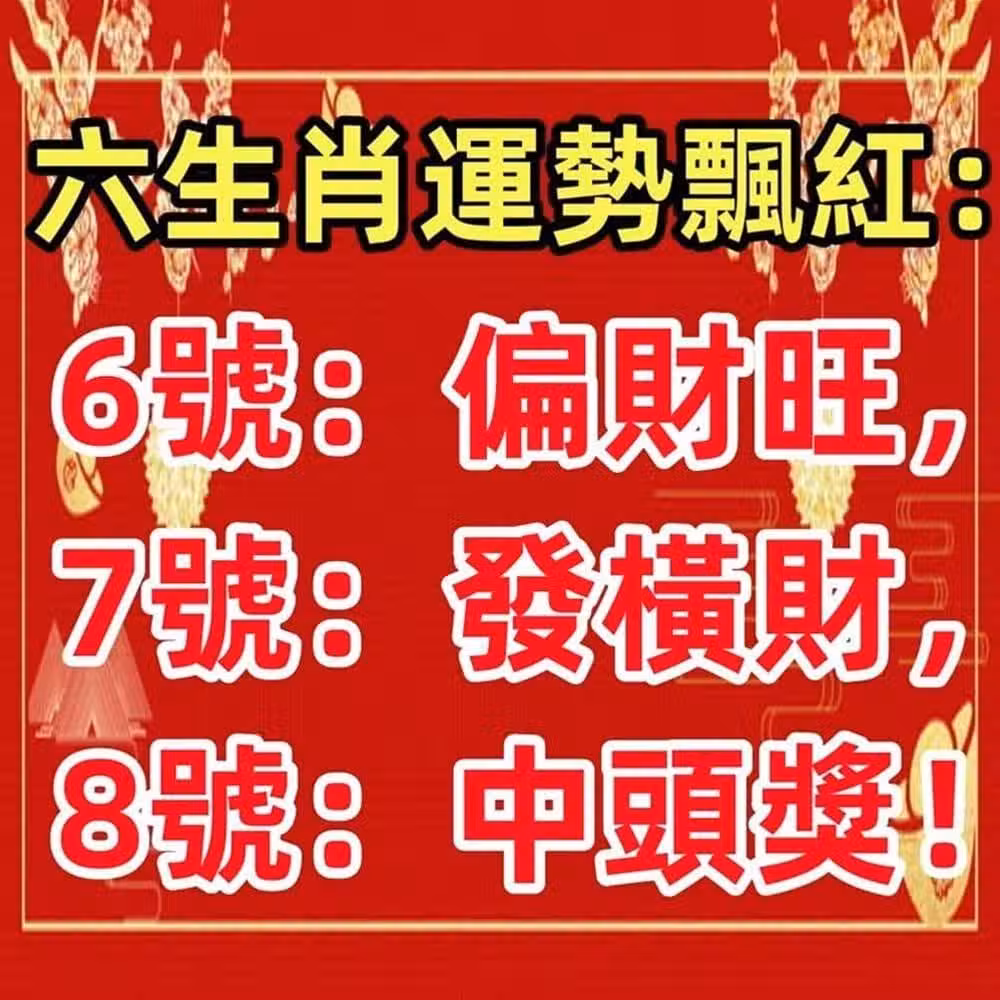 六大生肖運勢飄紅:6號偏財旺,7號發橫財,8號中頭獎!