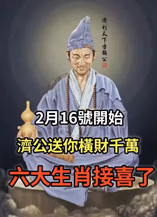 2月16號開始濟公送你橫財千萬,6大生肖接喜了