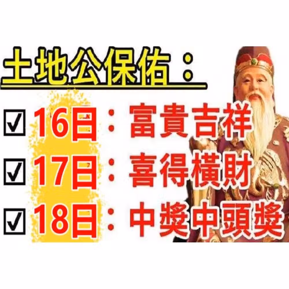 土地公保佑八大生肖:16日富貴吉祥,17日喜得橫財,18日中獎中頭獎有你嘛!