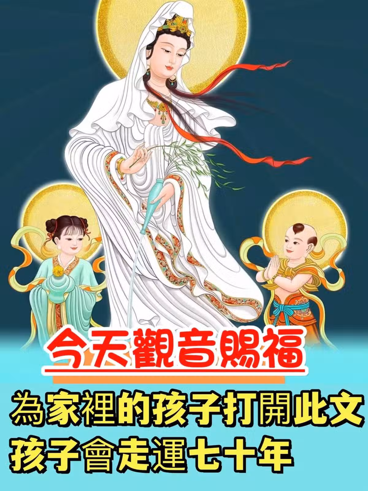 今天觀音賜福,為家裡的孩子打開此文,孩子會走運七十年