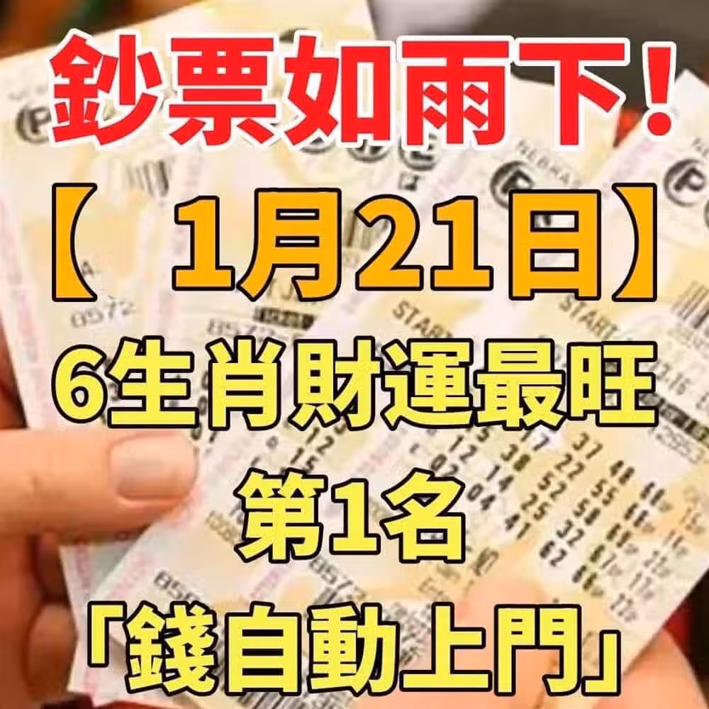 鈔票如雨下!【1月21日】6生肖財運最旺,第1名「錢自動上門」