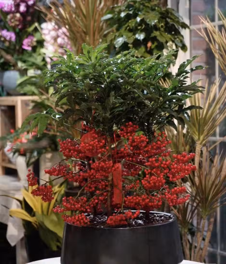 這種植物的果實呈現鮮紅色,就像紅寶石鑲嵌在綠葉中一樣,飽滿而迷人,能夠營造出喜慶的氛圍,寓意著明年生活順風順水、財源廣進。此外,富貴籽在民間還被廣泛用作中藥材,具有通經活絡、緩解消化不良和月經不調等作用。