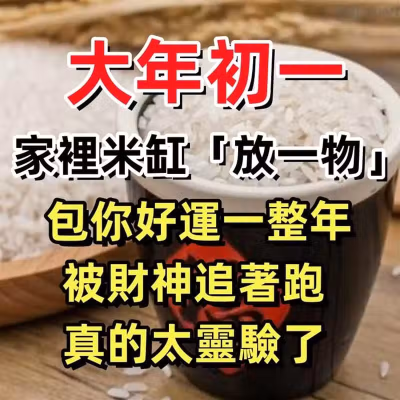 大年初一,家裡的米缸「放一物」包你好運一整年! 被財神追著跑,真的太靈驗了!