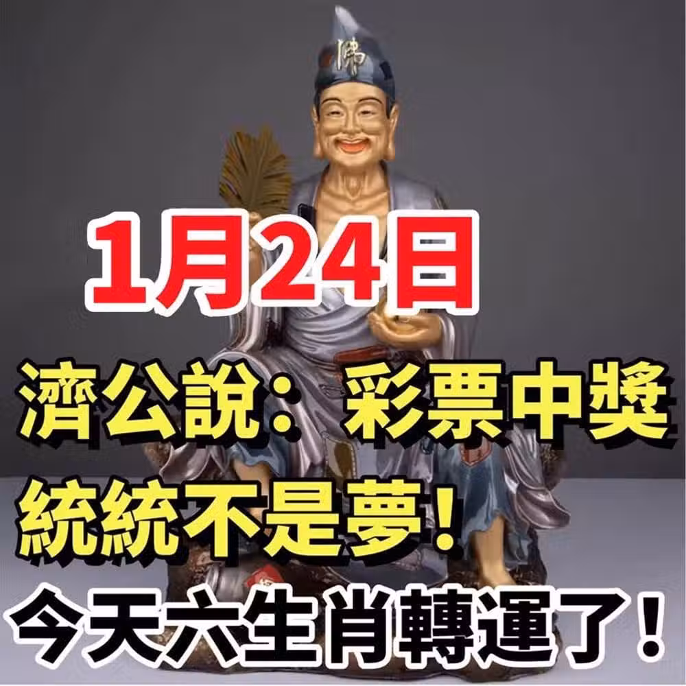 1月24日濟公說:彩票中獎統統不是夢,就在今天六生肖轉運了!