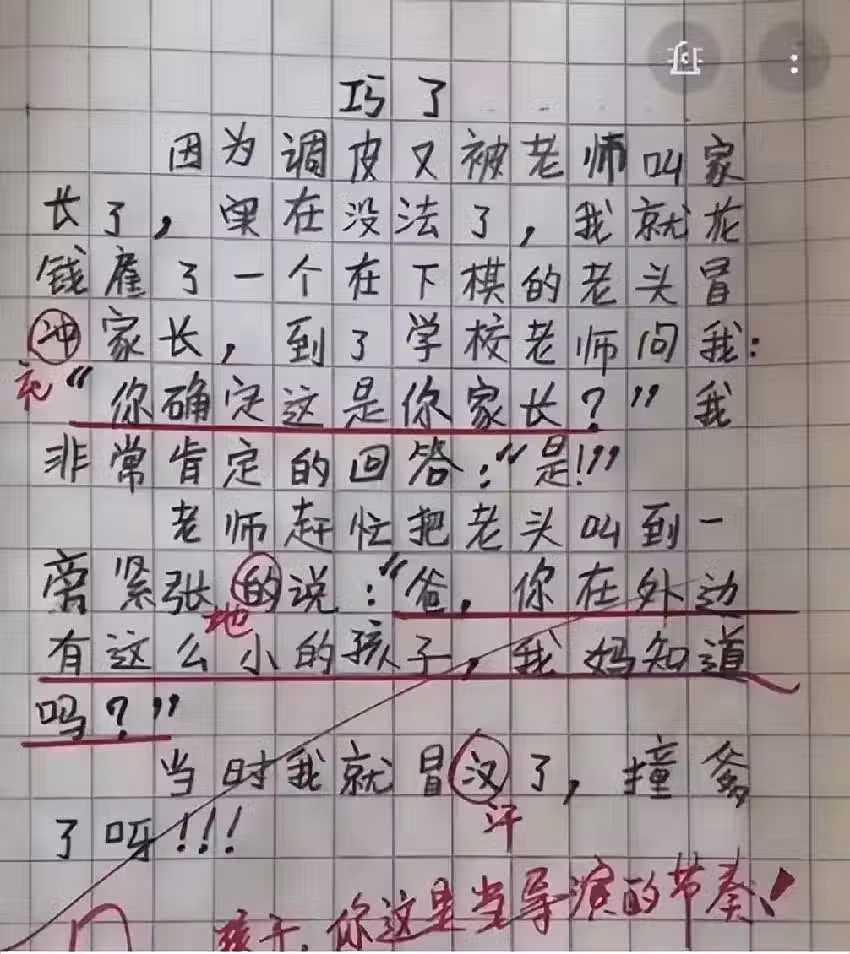 最後就是學生寫完作文之後,家長可以簡單的檢查一些,主要看學生有沒有出現錯別字,如果出現了錯別字,也要及時改正,避免鬧出笑話。