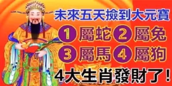 #詳情請見留言👇 未來5天撿到大元寶!屬蛇、兔、馬、狗快來接...這4大生肖準備發財了!