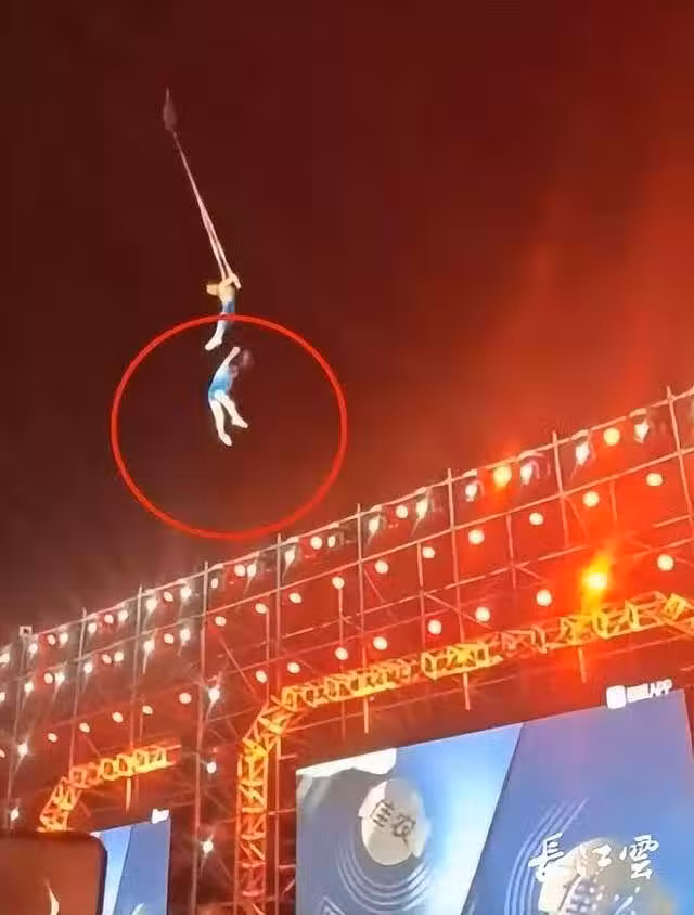 其實類似的事情發生了不止一次,去年安徽宿州一名女演員在高空表演雜技時突然墜落到舞台上,最終搶救後不治身亡,年僅37歲,經調查承辦方沒有按照規定履行審批手續,違規演出,還違規使用吊車吊人,操作不規范。