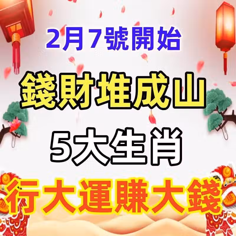 2月7號開始錢財堆成山,行大運賺大錢的生肖