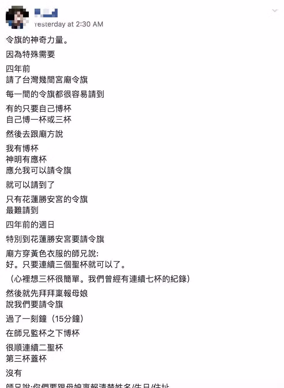 看完他的經歷後,網友們也忍不住驚嘆,紛紛留言表示「真的不能小看令旗」、「無形中的提醒,讓你躲了不少劫啊」、「王母娘娘慈悲」。最後也有不少人好奇,請令旗到底有什麼作用?對此,就有專業網友解答,其實每一支令旗都代表著一位神尊,通常信徒請回家,是可以拿來鎮宅保平安的。