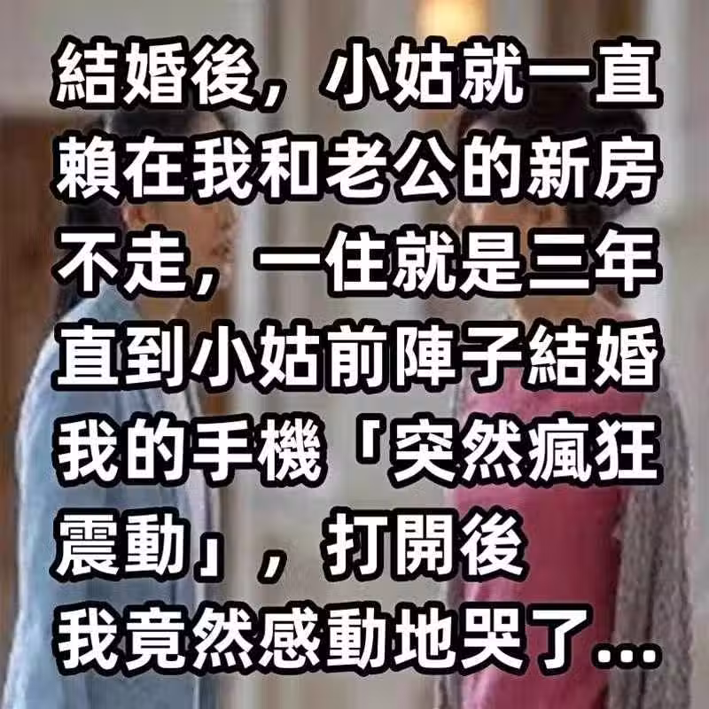 結婚後, 小姑就一直賴在我和老公的新房不走,一住就是三年。直到小姑前陣子結婚,我的手機「突然瘋狂震動」,打開後我竟然感動地哭了…