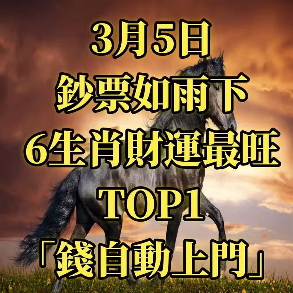 3月5日,鈔票如雨下!6生肖財運最旺,TOP1「錢自動上門」