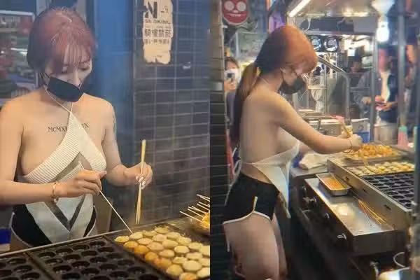 一名網友在「爆廢1公社」分享了照片,描述士林夜市某烤鳥蛋店的老闆娘穿著火辣,即便氣溫下降,依然身穿無袖衣物,露出結實的身材,並配戴真理褲全情投入工作的畫面,讓人讚嘆她的專業態度。