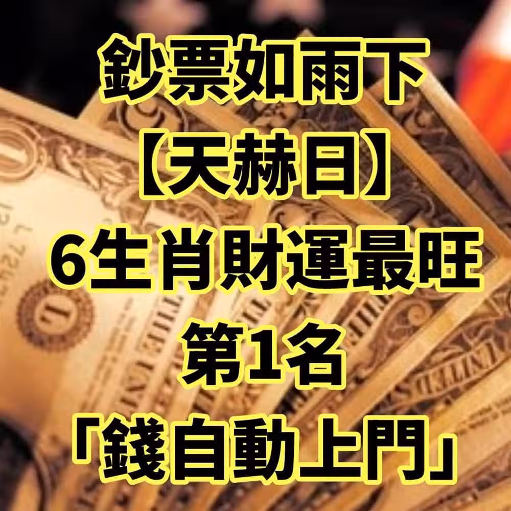 鈔票如雨下!【天赫日】6生肖財運最旺,第1名「錢自動上門」