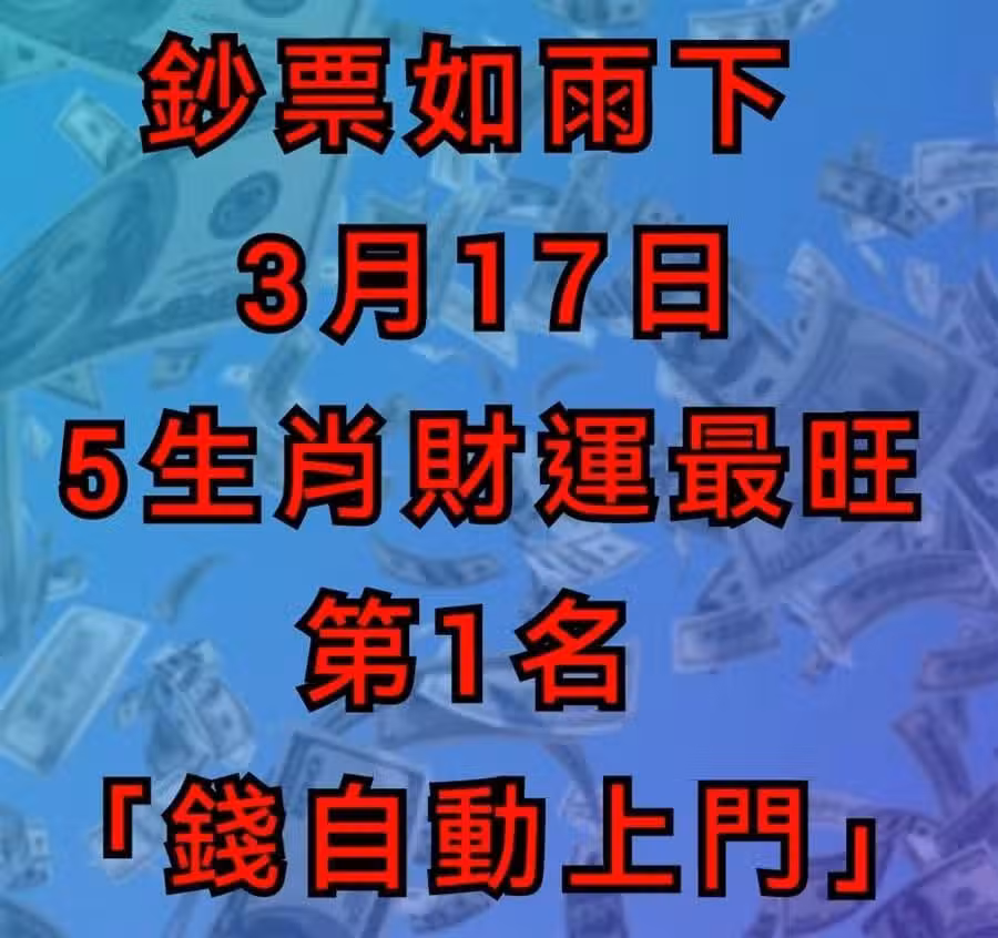 3月17日 5生肖財運最旺 第1名 「錢自動上門」