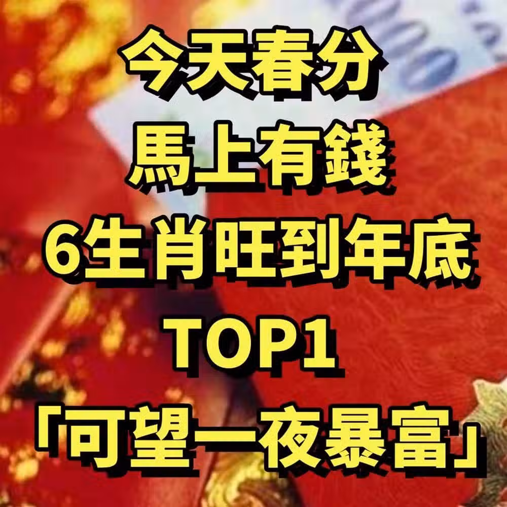 今天春分 馬上有錢,6生肖旺到年底!TOP1 財運狂飆「可望一夜暴富」