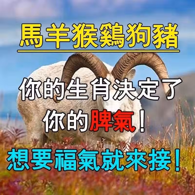 【馬羊猴雞狗豬】你的生肖,決定了你一生的脾氣!想要福氣就來接