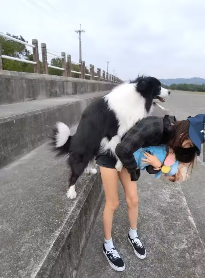 就有人提出「這隻狗的動作很不雅觀」的質疑,不過事後湯小妹解釋說其實不是大家想的那樣,只是她懷裡抱著另外一隻小狗,所以那隻狗也想過來嬉戲打鬧,結果動作恰好被朋友拍到~XDD