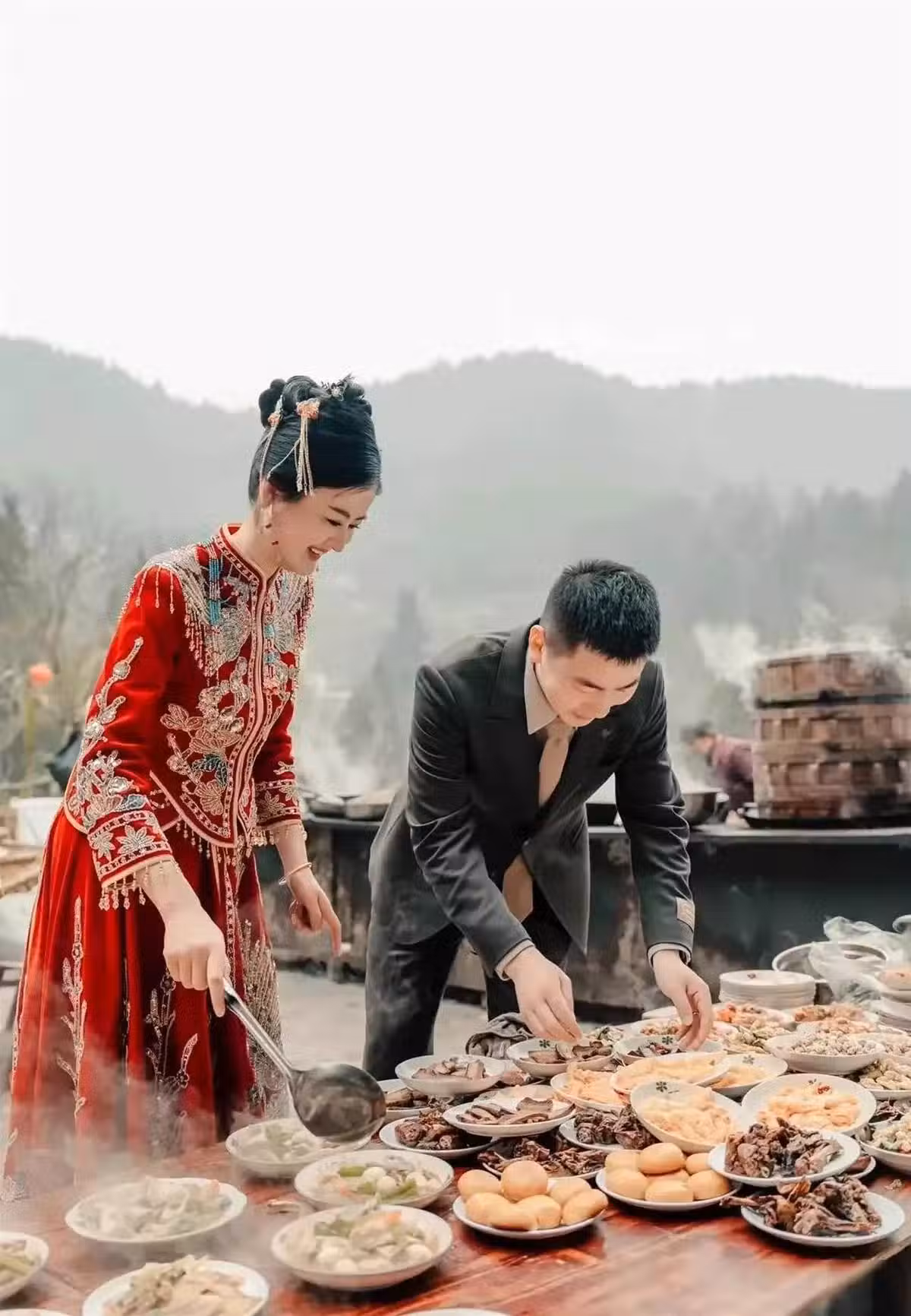 新婚夫婦「農村婚禮」拍出大片感,照片卻被質疑是「AI生成」,一細節曝光謠言不攻自破