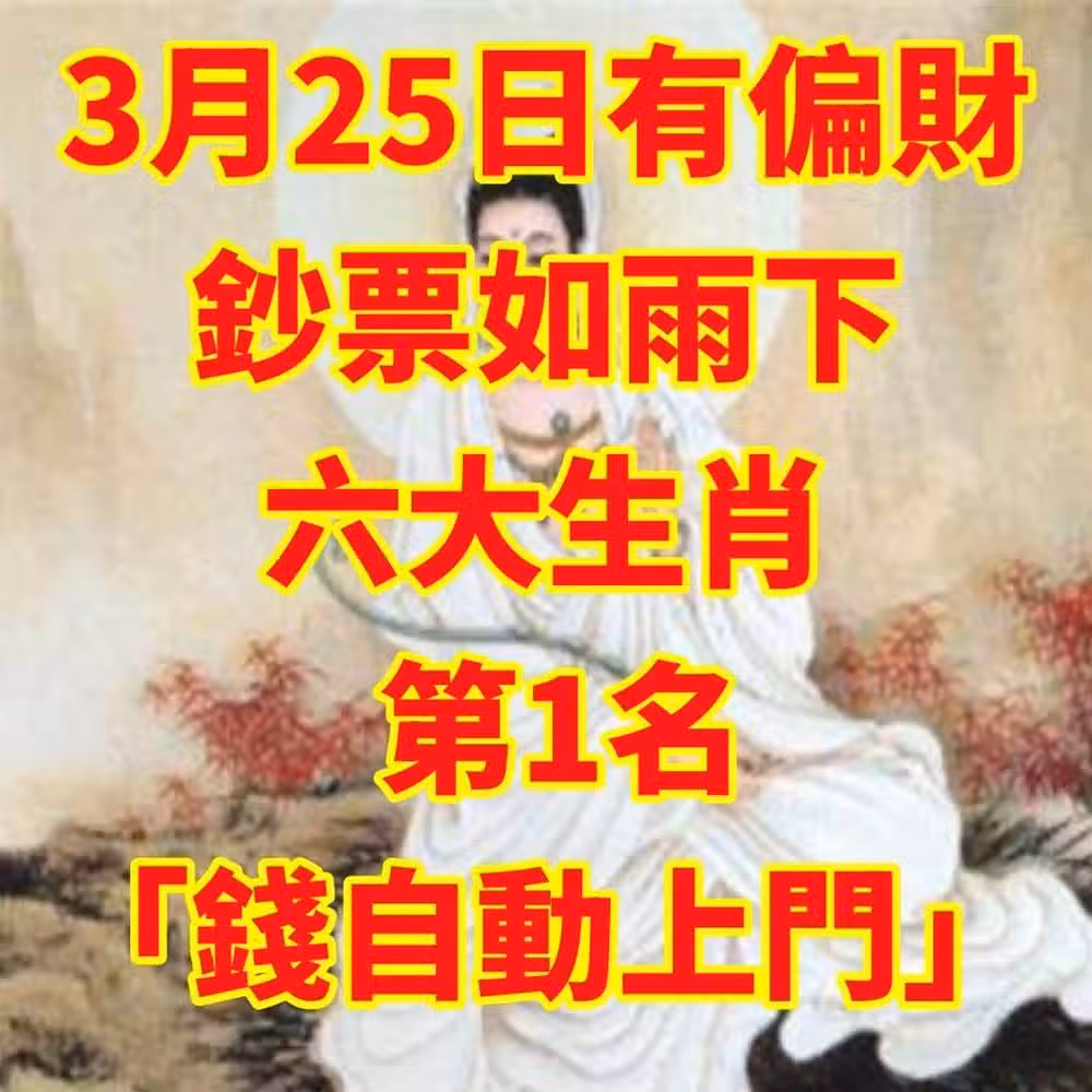 3月25日有偏財,鈔票如雨下的生肖! 第1名「錢自動上門」