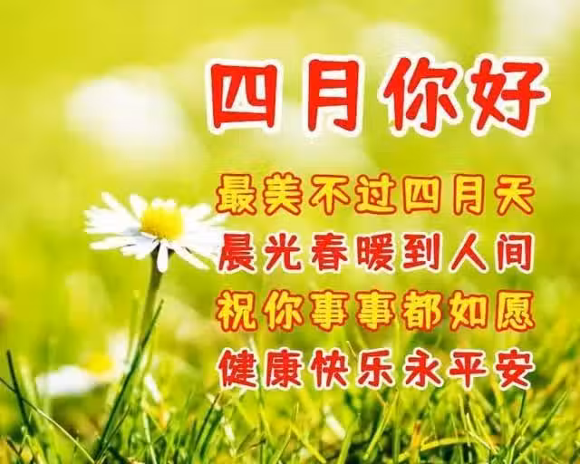 3、最美不過四月天,晨光春暖到人間,祝你事事都如願,健康快樂永平安,4月你好