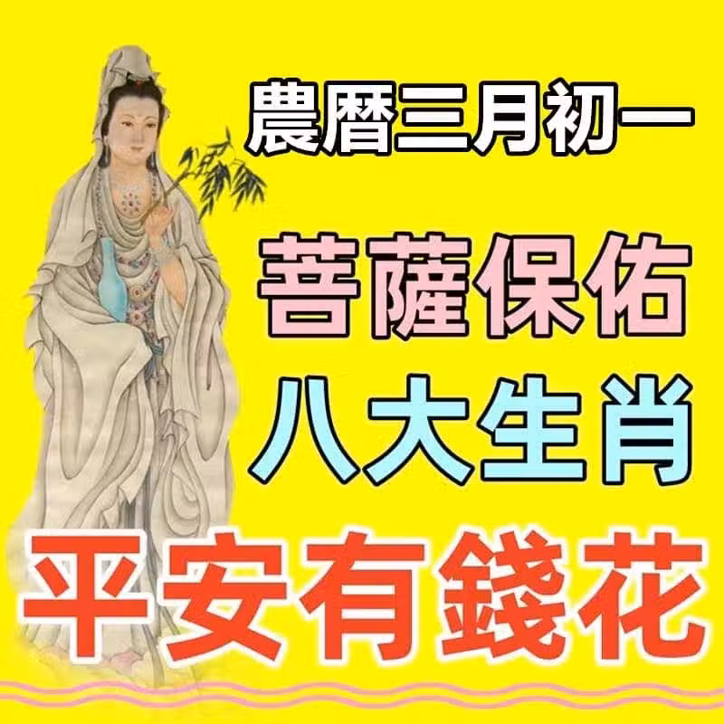 農歷三月初一,菩薩保佑八大生肖平安有錢花