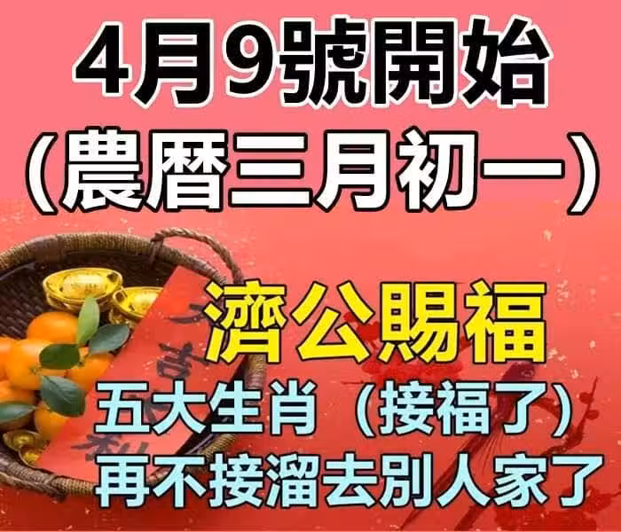 4月9號(農暦三月初一)開始濟公賜福,五大生肖(接福了)再不接溜去別人家了