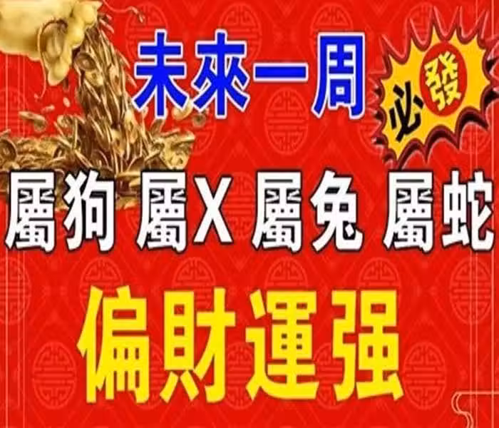 未來一周(屬狗 屬X 屬兔 屬蛇)得財神爺庇佑,財運旺盛,日後大富大貴