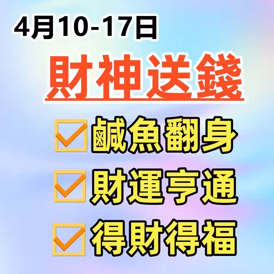 4月10到17日財神送錢,鹹魚翻身財運亨通,得財得福的生肖