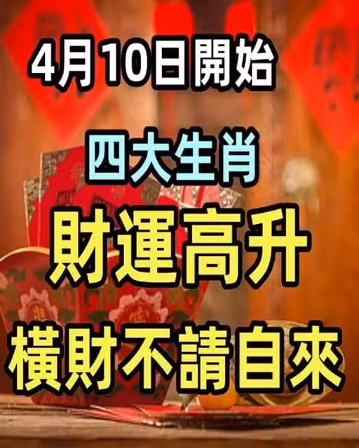 4月10日開始,四大生肖財運高升,橫財不請自來