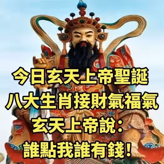今日玄天上帝聖誕 !八大生肖接財氣福氣,玄天上帝說:誰點我誰有錢!