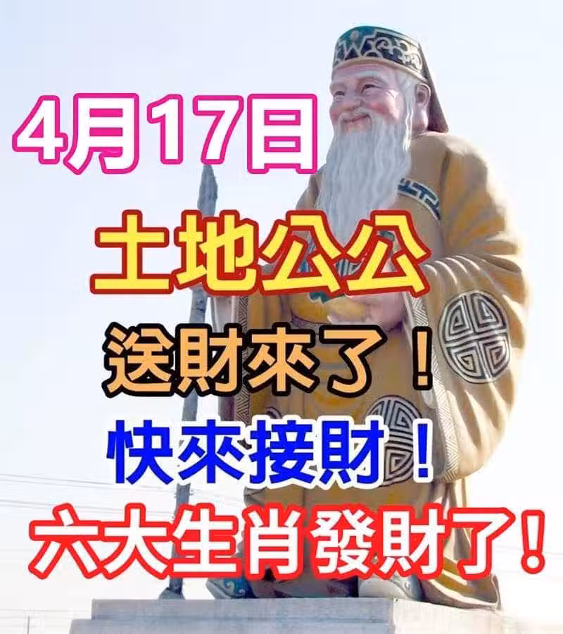 今天4月17日,土地公大開金庫大派財! 這幾個生肖快來接財!