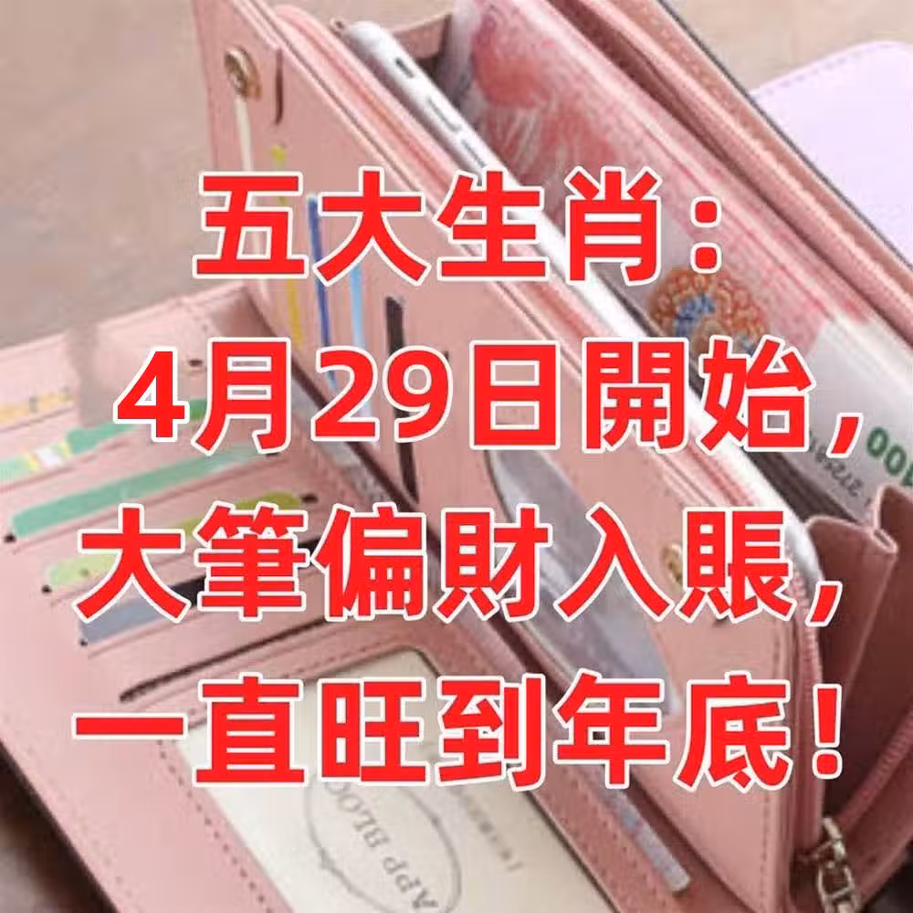 4月29日開始大筆偏財入賬,一直旺到年底的生肖!