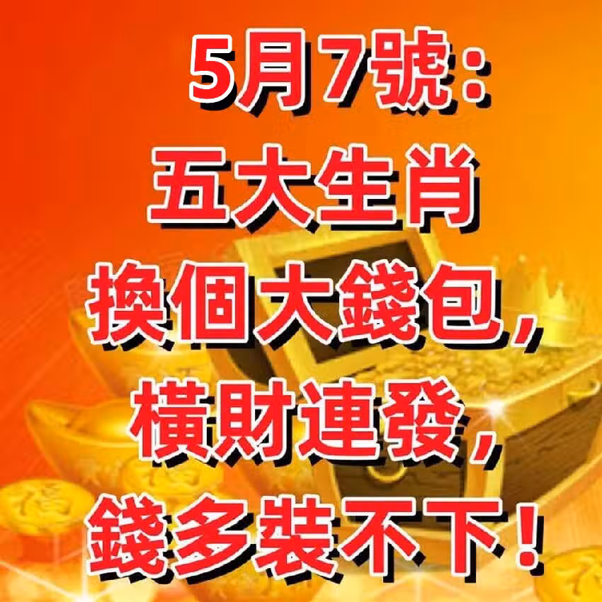 5月7號準備換個大錢包,橫財連發,錢多裝不下的生肖!