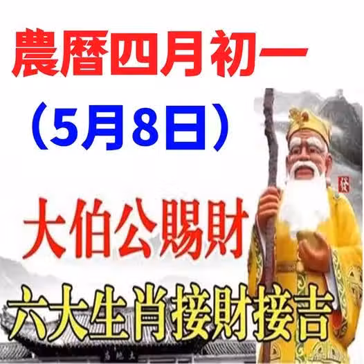 農暦四月初一(5月8日)大伯公賜財,六大生肖接財接吉