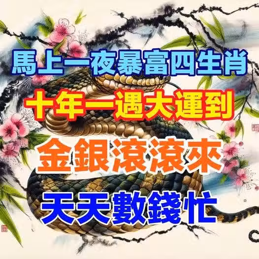 馬上一夜暴富「四生肖」,不出5天,十年一遇大運到,金銀滾滾來,天天數錢忙