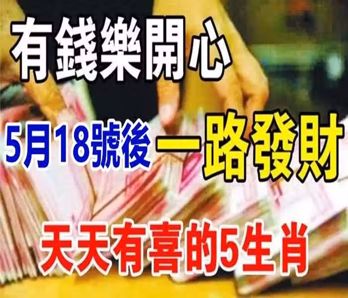 有錢樂開心,5月18號後天天有喜事,一路發財的生肖