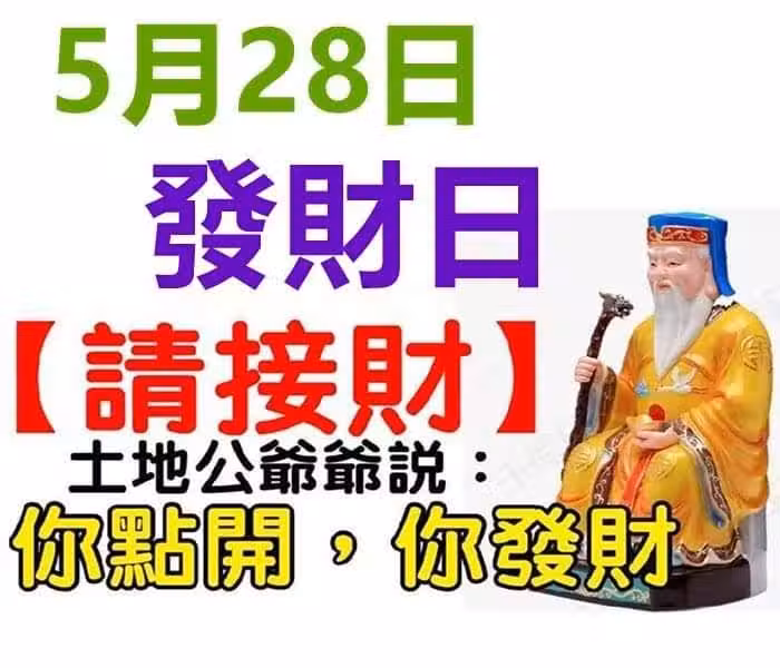 5月28發財日,六大生肖請來接財