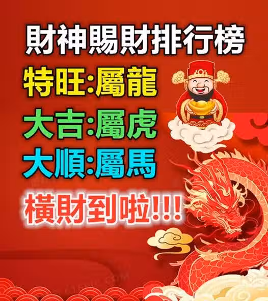 財神賜財排行榜(屬龍,屬虎,屬馬)橫財到啦