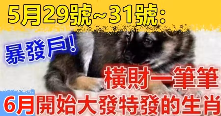 5月29號~31號:接財神,迎貴人,接橫財的生肖!