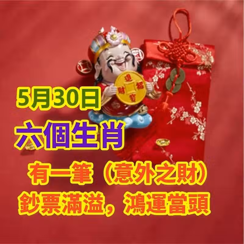 5月30日,六個生肖有一筆(意外之財)鈔票滿溢,鴻運當頭