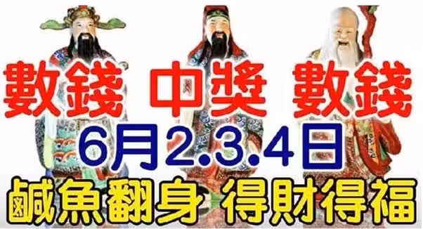 6月2-4日財神送錢,鹹魚翻身,得財得福的生肖