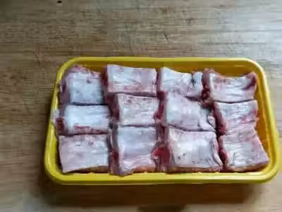 將排骨洗凈,切成更小的小塊並且把水分都瀝干。
