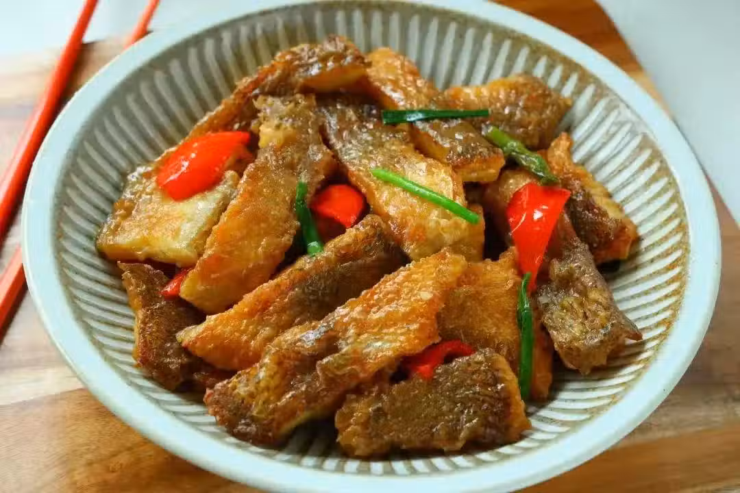 製作配料:鱸魚1條 白鬍椒粉1小勺 姜粉1小勺 料酒1勺 鹽半勺 生抽1勺 紅椒1個 澱粉1勺 蔥蒜適量