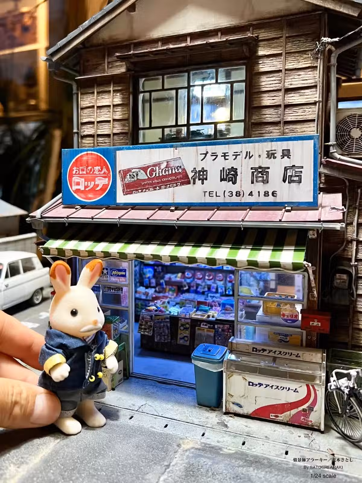 這次他將兒時記憶中的轉角柑仔店,透過微型作品完整重現,不管是具有復古感的建築外觀和招牌,抑或是店裡販售的小零食,門外的冰淇淋櫃等都超仿真!