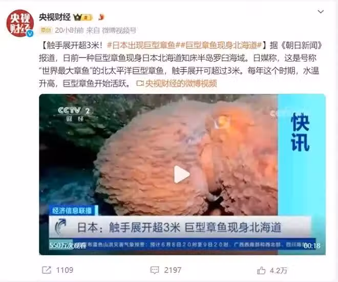 觸手超3米!日本出現巨型章魚,網友:核污染水,引發基因變異