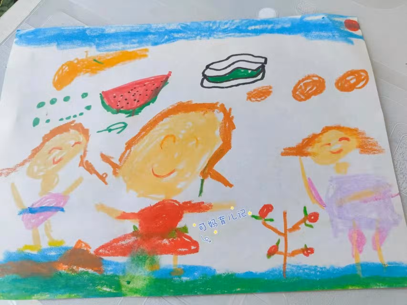 比如孩子在畫面中突然畫了一個沒見過的玩具,或者穿了什麼衣服等等,可能在向你表達,她很喜歡某件衣服,或者某個玩具。他把想法表達在畫中,幻想成自己送給自己的禮物。