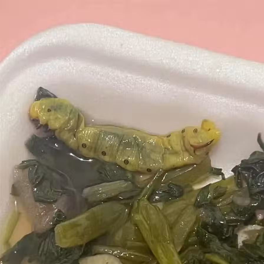 點燙青菜見「粗大毛毛蟲」橫躺餐盒裡!網友吃素本來是一種清靜的生活方式,但如果在吃素時吃到毛毛蟲,會讓人不禁懷疑是否算是不小心破戒了呢?不過更重要的是,吃外食的壞處不僅僅在於飲食營養不均衡、重油重鹹,更在於衛生無法自主控制,當吃到有腳的昆蟲時才會感到後悔莫及。