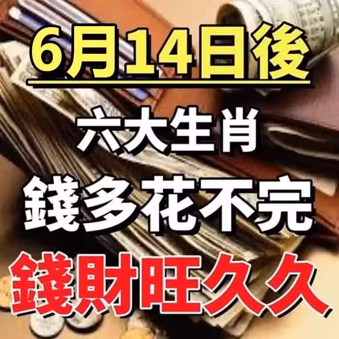 6月14日後錢多到花不完,錢財旺久久的生肖