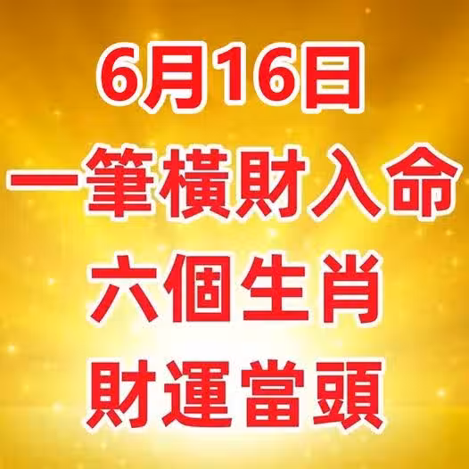 6月16日會有一筆橫財入命,六個生肖財運當頭!