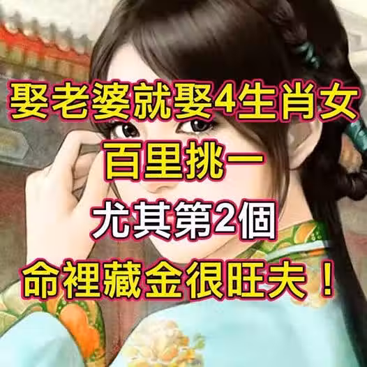 娶老婆就娶「4生肖女」!百里挑一,尤其第2個「命裡藏金」很旺夫
